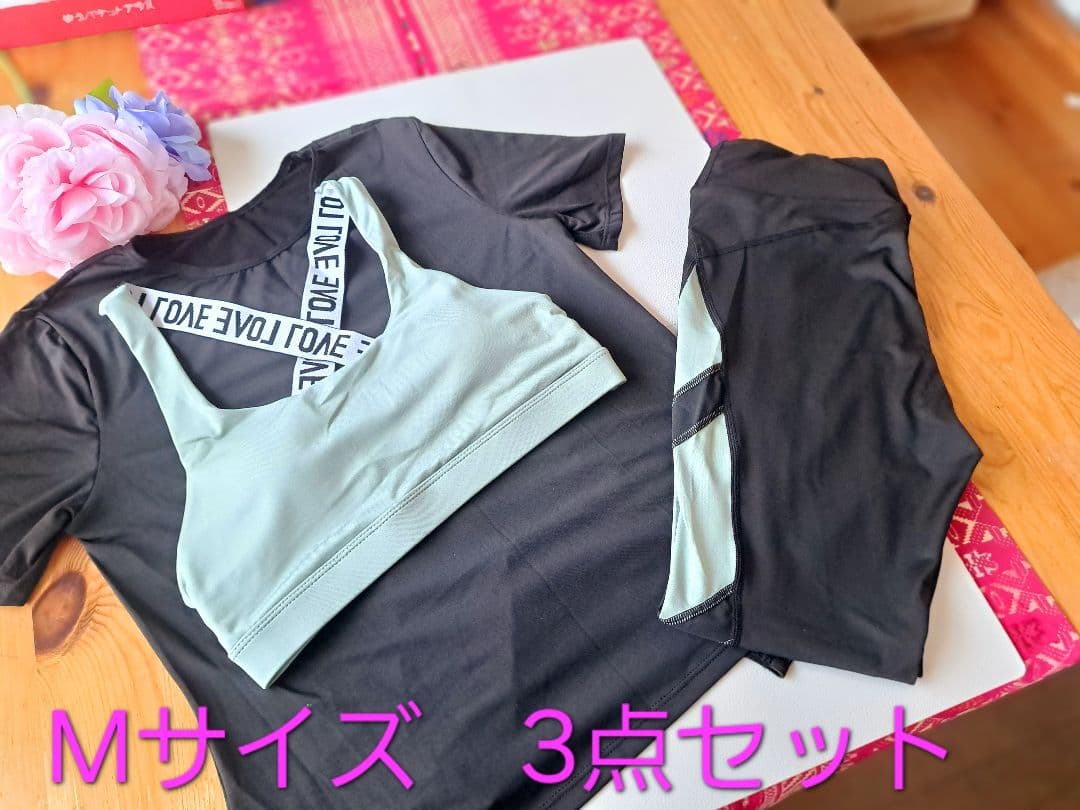 ヨガウェア☆上下セット☆トップ&レギンス&Tシャツ3点セット☆スポーツウェア