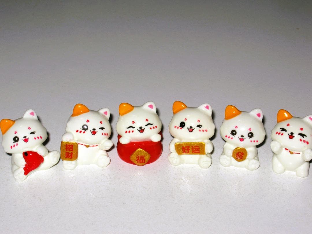 ミニチュア【ラッキー ミニ にゃんこ 6個セット】猫 ねこ フィギュア 幸運 福