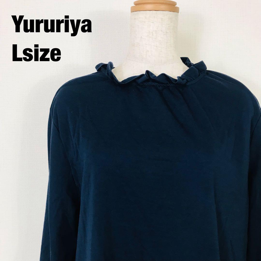 Yururiya ボトルネック 長袖 ブラウス チュニック ネイビー J3