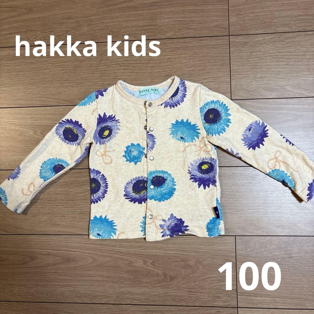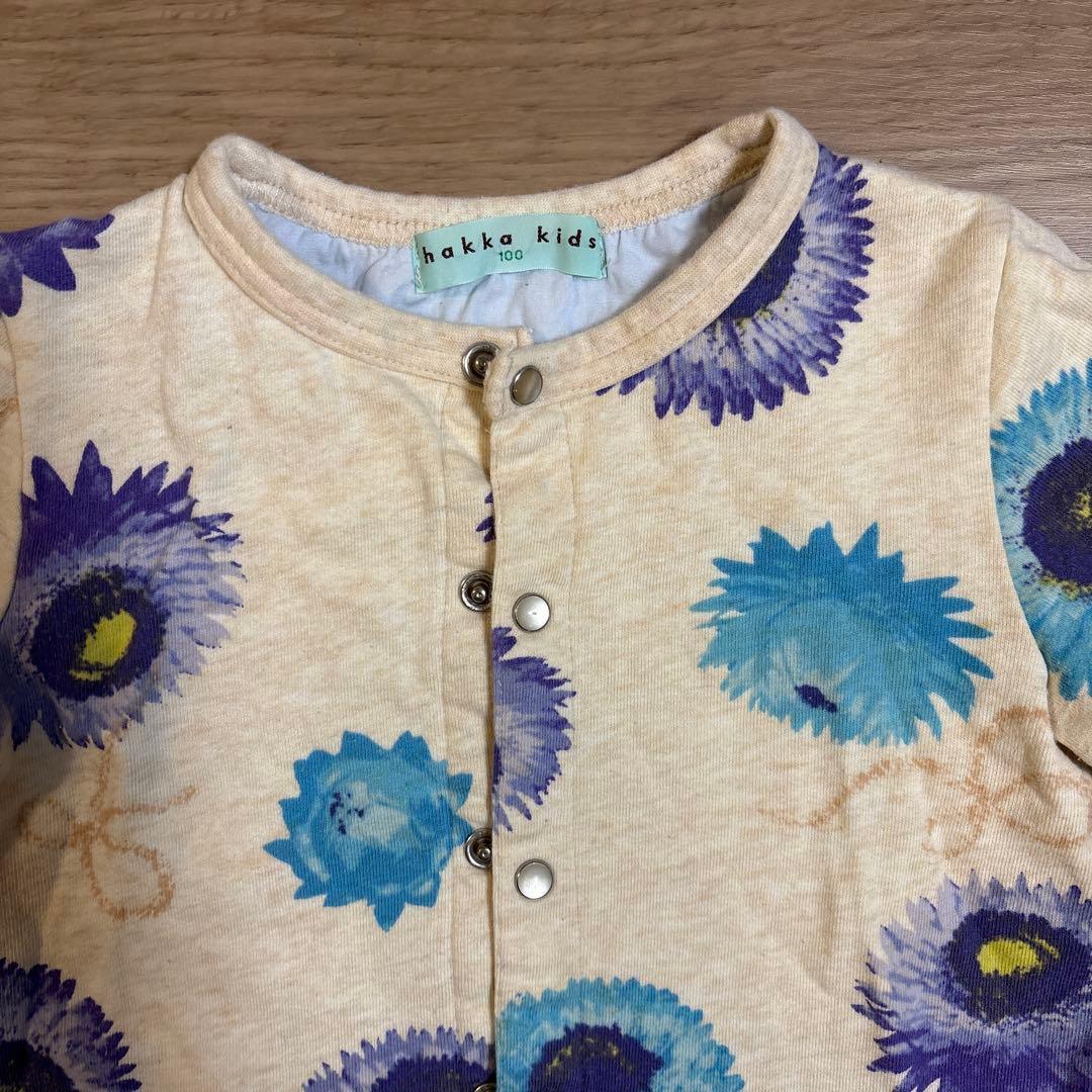 ハッカキッズ 100 カーディガン 花柄 ブルー パープル 綿100%