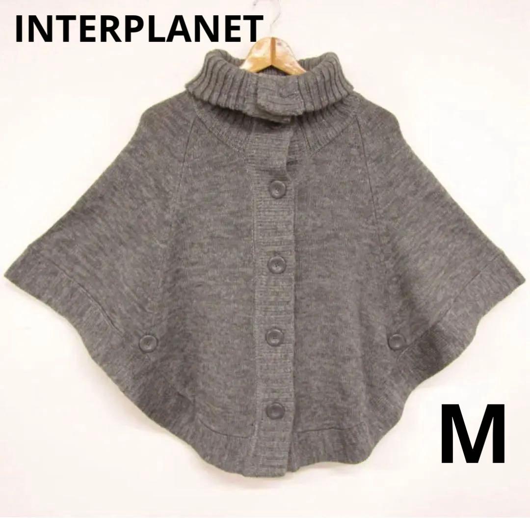INTERPLANET グレー ニット ケープコート ポンチョ ウール混