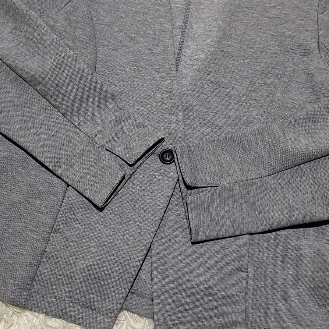 【美品】グレー ノーカラージャケット ジャージ Mサイズ