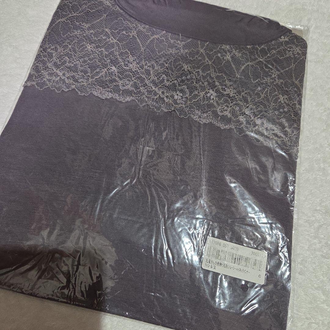 九鬼さんの発熱うるおいレーシーハイネックインナー 3L チャコール