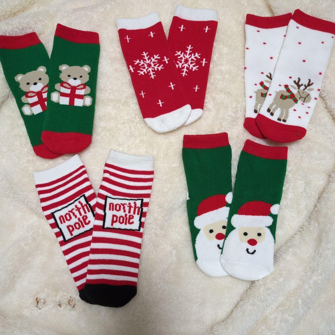 ⭐クリスマス⭐ ベビー靴下 5足セット フリーサイズ サンタ トナカイ 雪