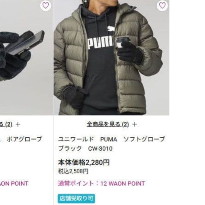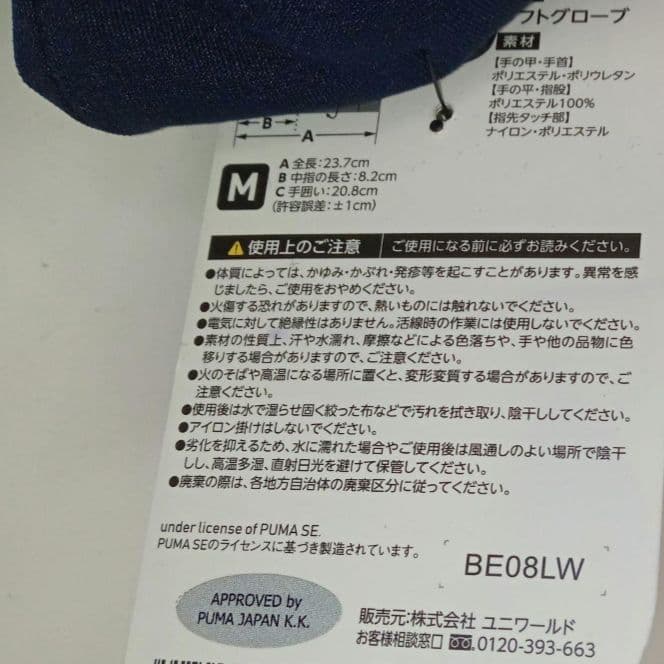 Mサイズ CW-3010 ソフトグローブ ネイビー PUMA GLOVES 防寒