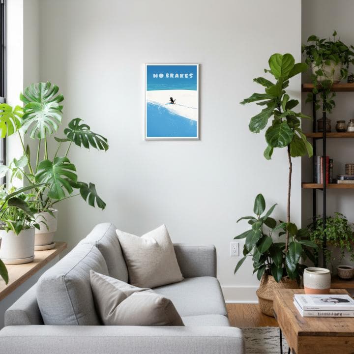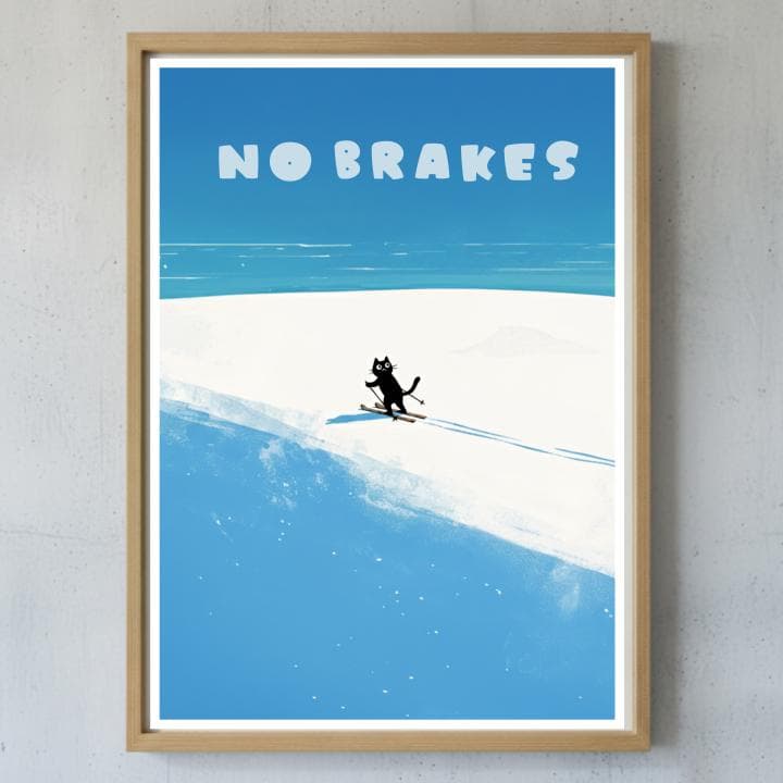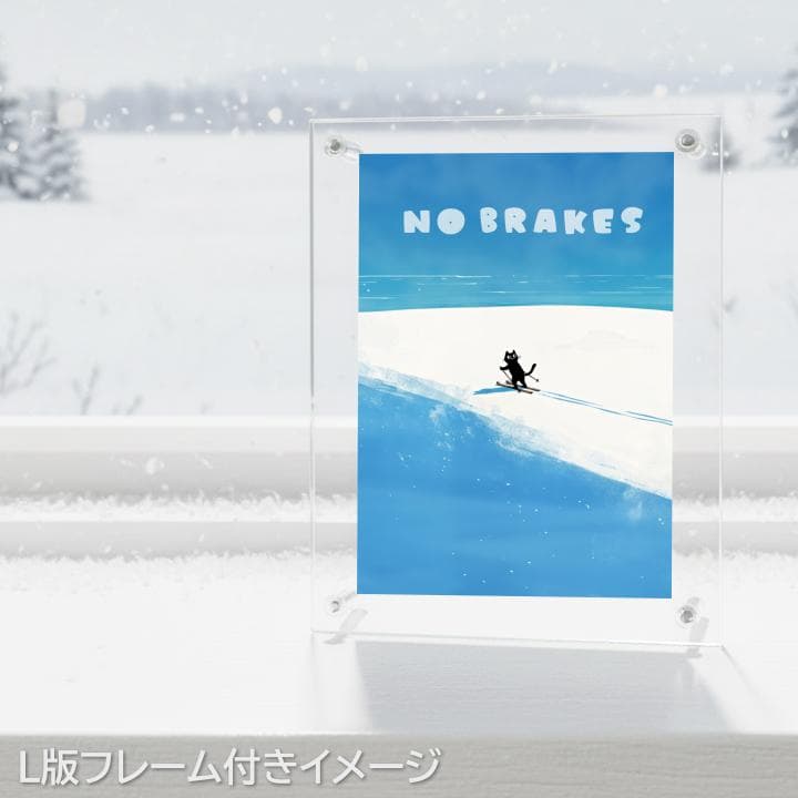 A4 スキーをする黒猫 ミッドセンチュリー モダン ミニマル インテリア ギフト