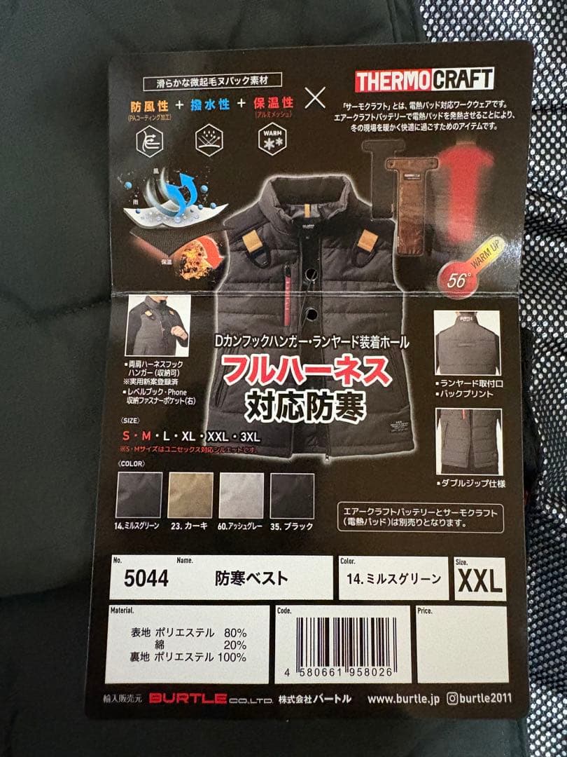 ✨新品✨BURTLEバートル5044防寒ベスト✨XXL✨グリーン✨サーモクラフト