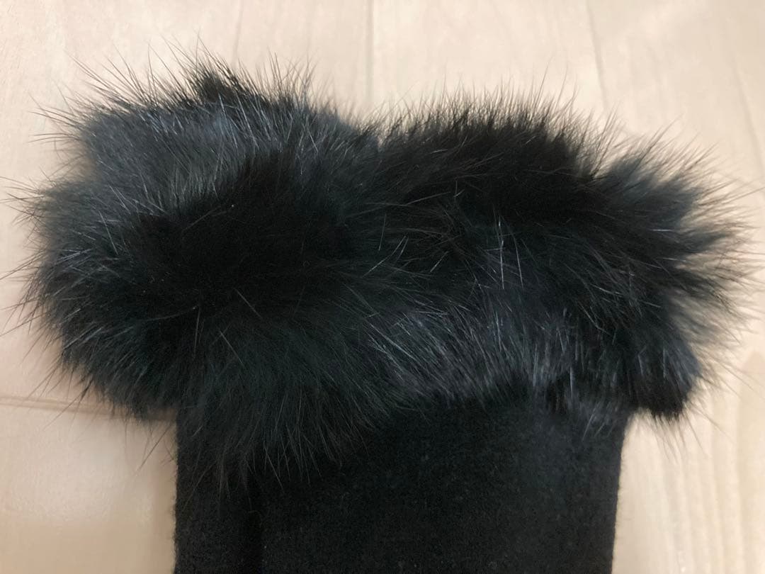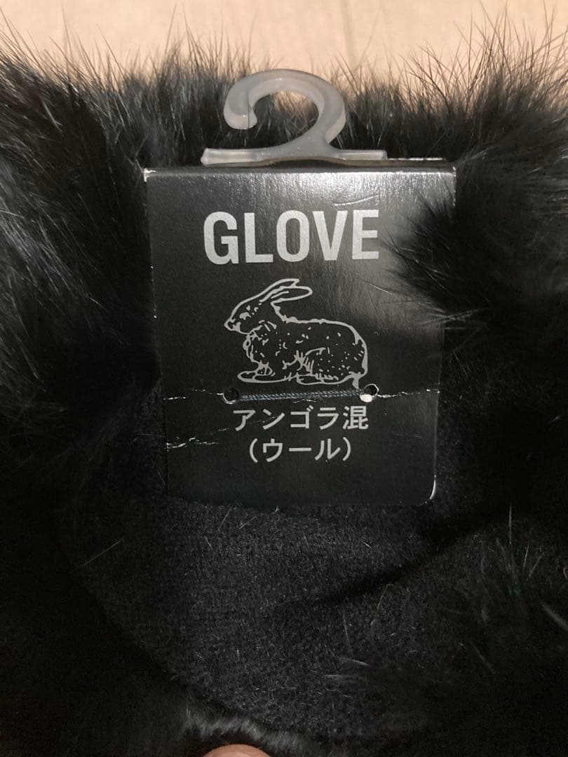 【新品未使用/タグ付】アンゴラ混手袋 ラビットファー付 ブラック