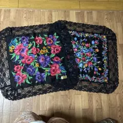 未使用レイクアルスター花柄プリントレース付き大判ハンカチ