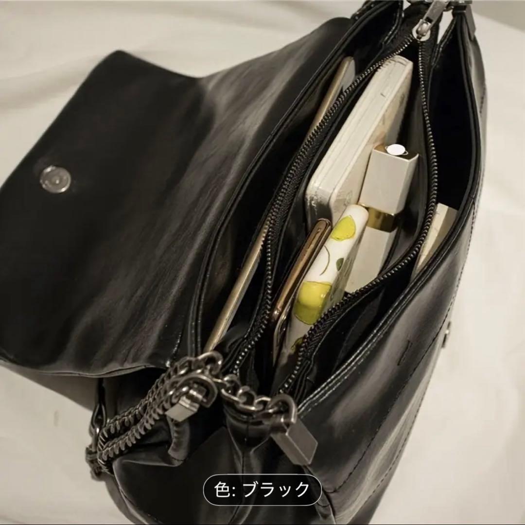 ブラック ビンテージ風トートチェーンストラップ付き ショルダー