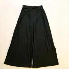 ブラック ワイドパンツ ドローストリング付き