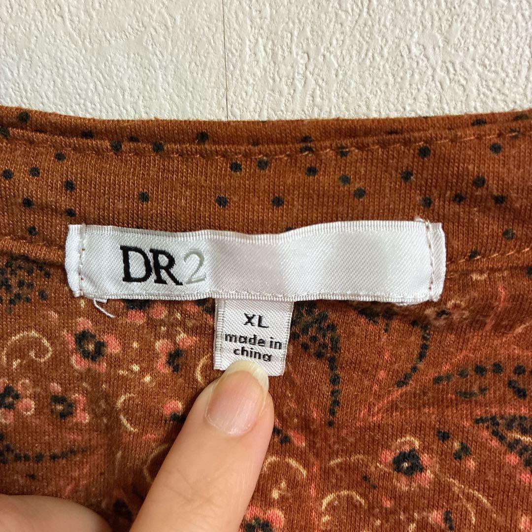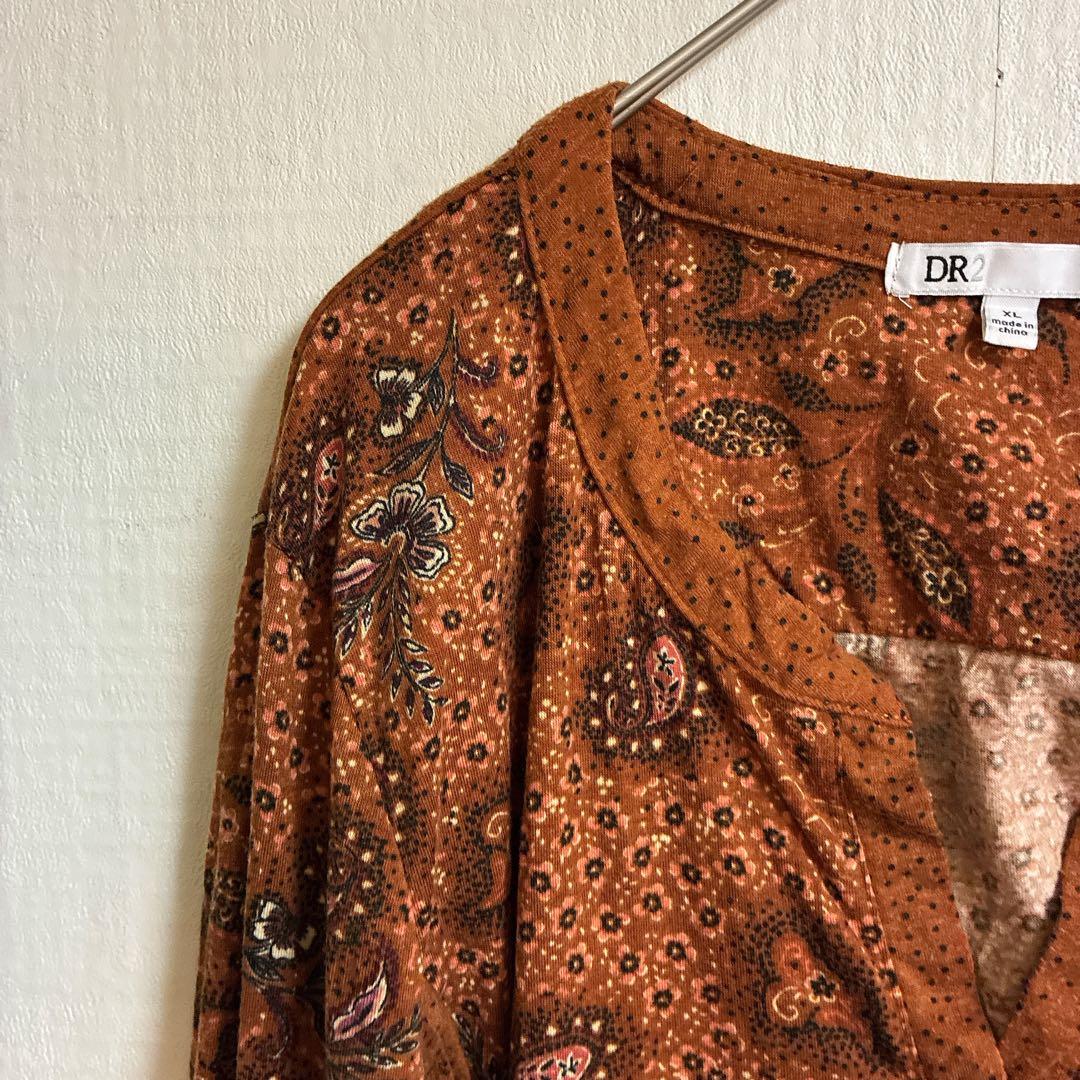 海外古着♡DR2【XL】ペイズリー柄 ブラウン系テラコッタ長袖Tシャツ
