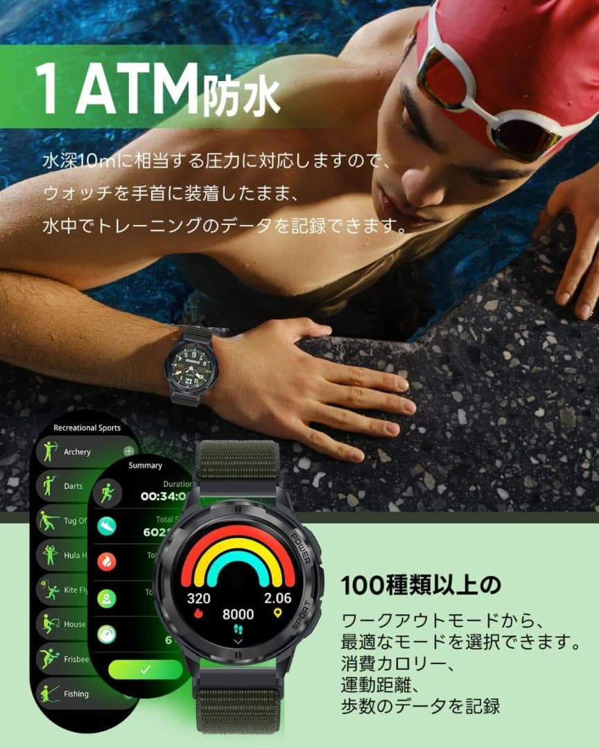 運動特化 スマートウォッチ FOSMET H5 AMOLED 1.43インチ