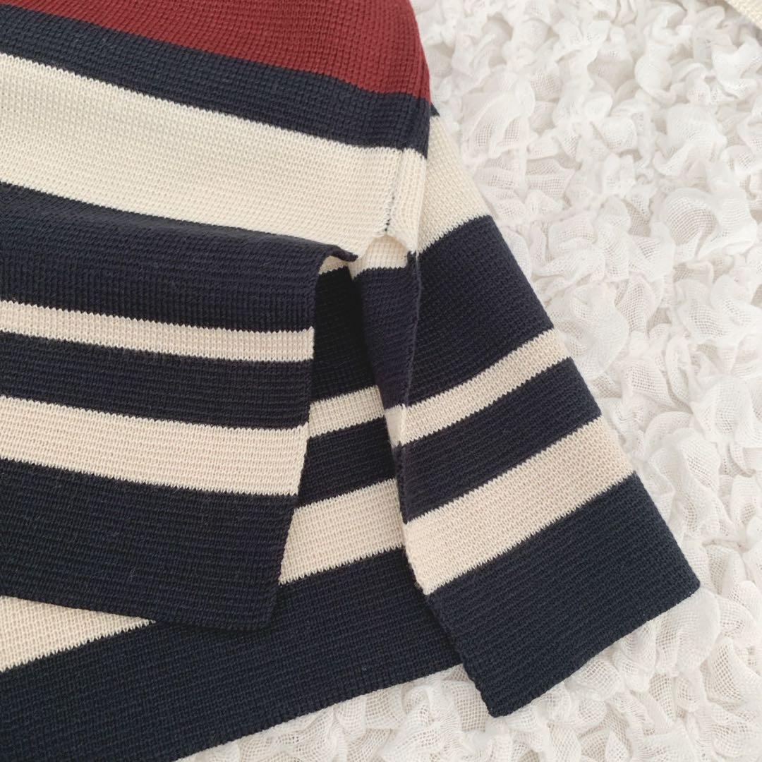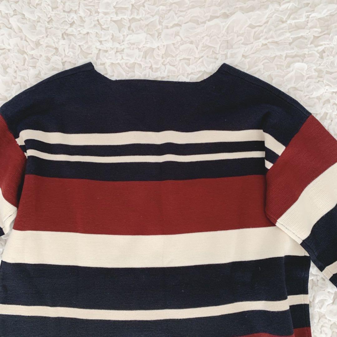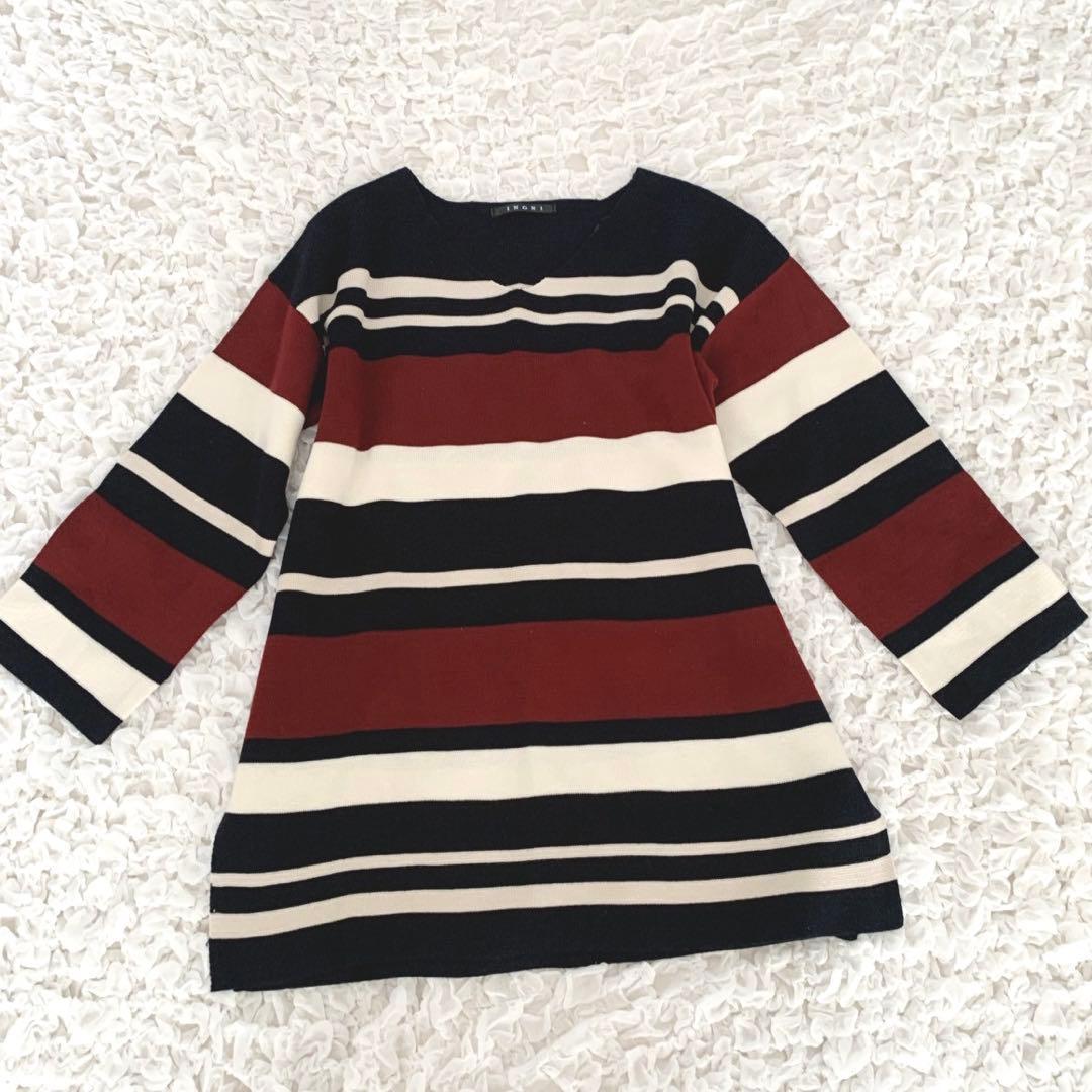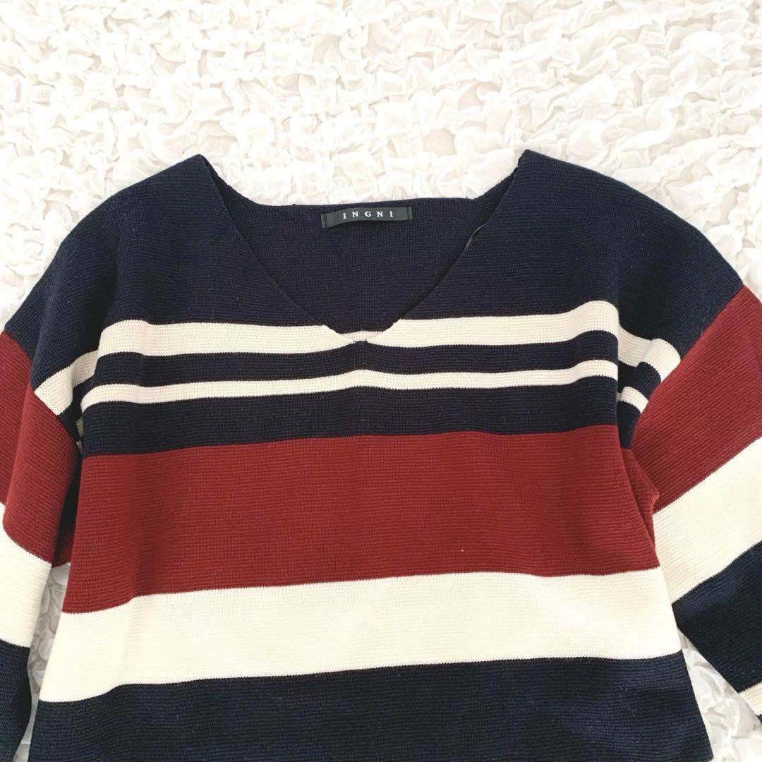 【美品】イング ボーダーニット Vネック【M】ゆったり 体系カバー カジュアル