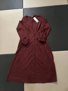 バーガンディ 長袖シャツワンピース 新品タグ付き