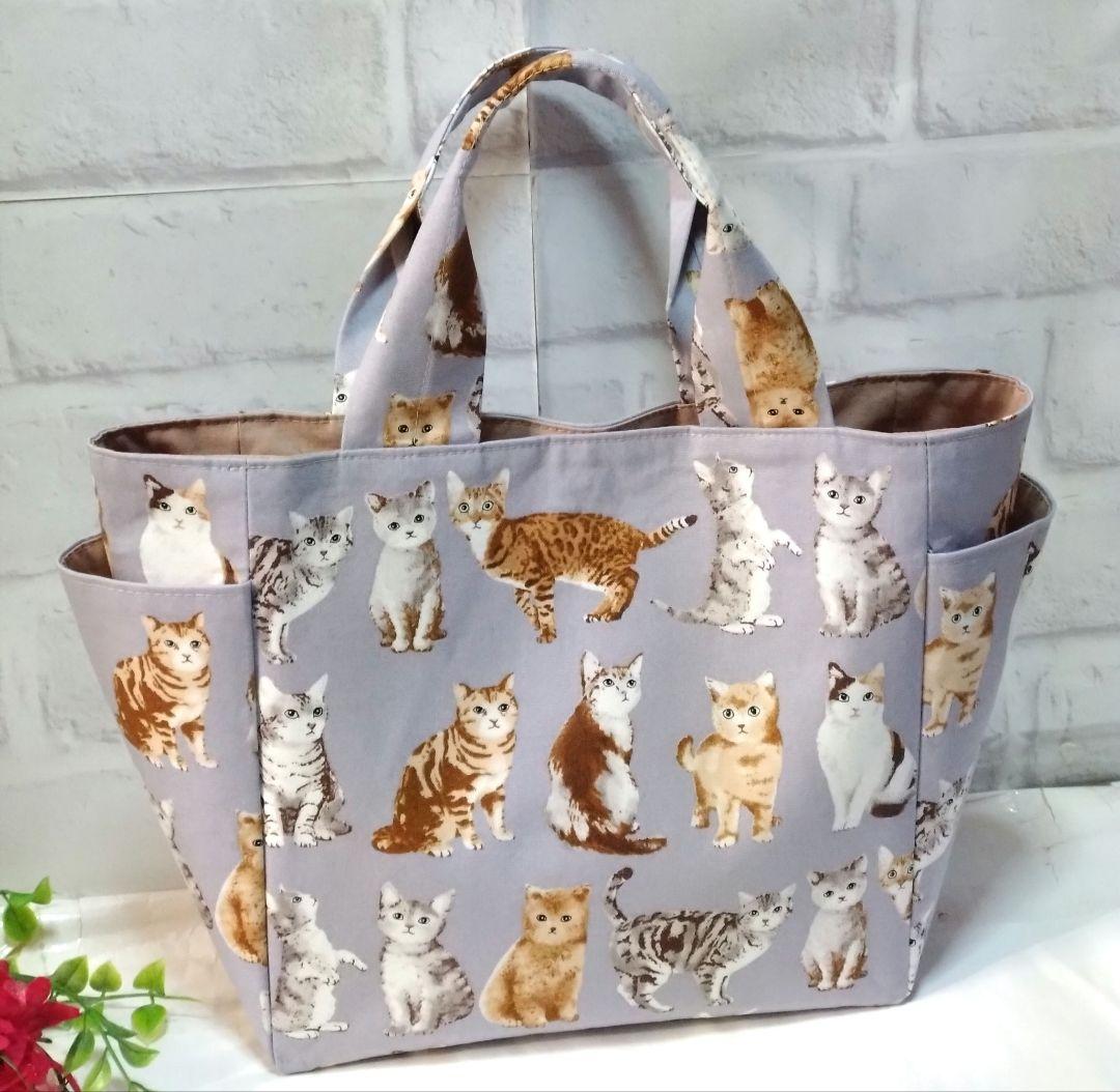ネコ柄*サイドポケット付きバック(中)