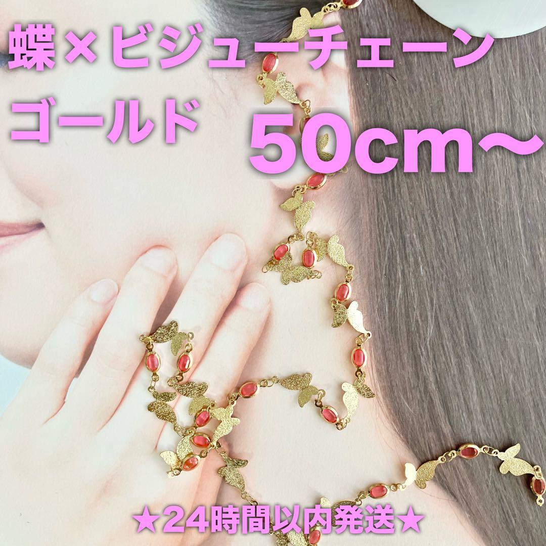 ★24時間以内発送★【50cm】蝶×ビジューチェーン(251122-03)