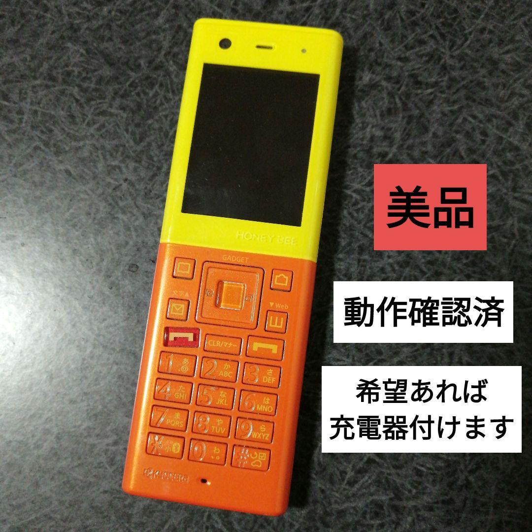 【美品】ウィルコムハニービー 携帯電話PHS本体 黄色/オレンジ KYOCERA