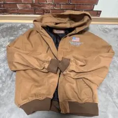カーハート パーカー スウェット 裏起毛 袖プリント ビッグロゴ カーキ S