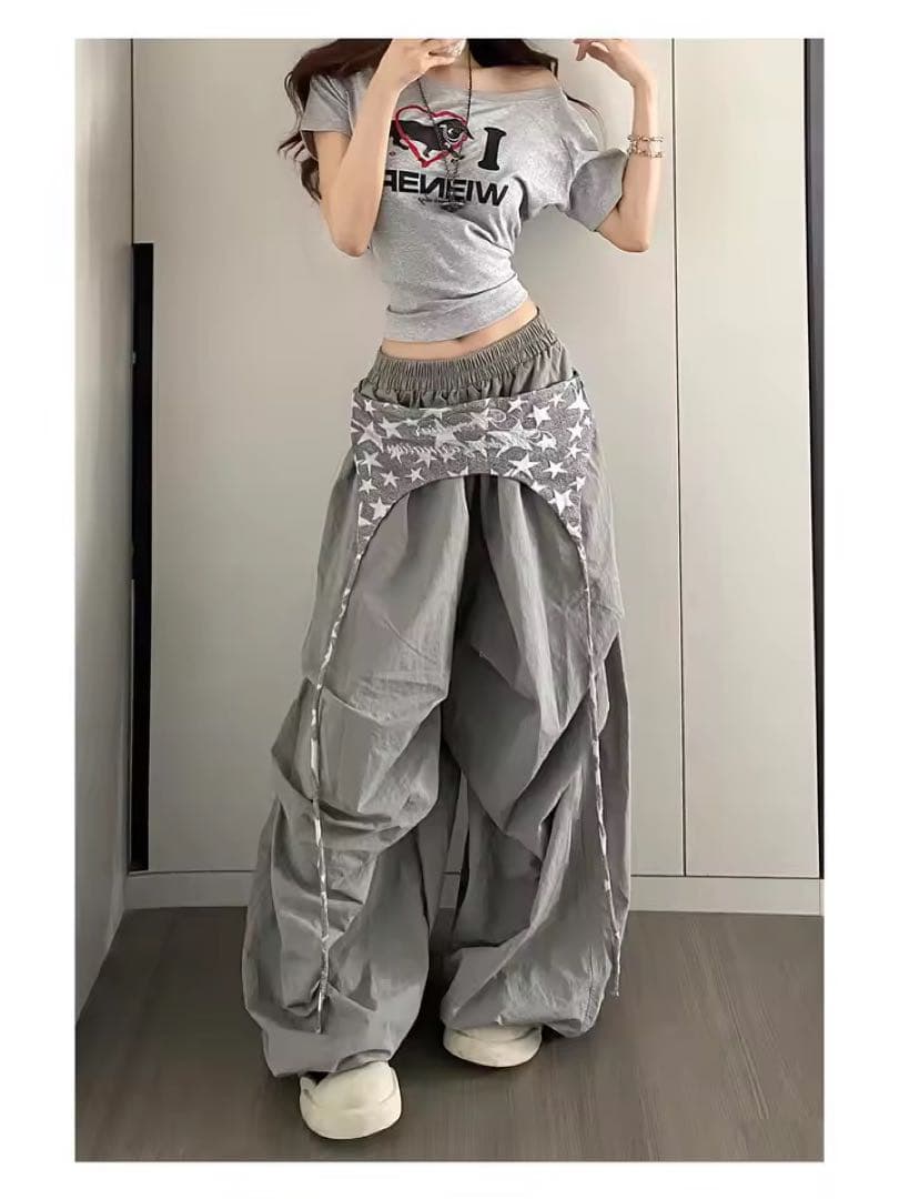 エンジェル 星柄 ジョガーパンツ カーゴパンツ ワイド ルーズ グレー