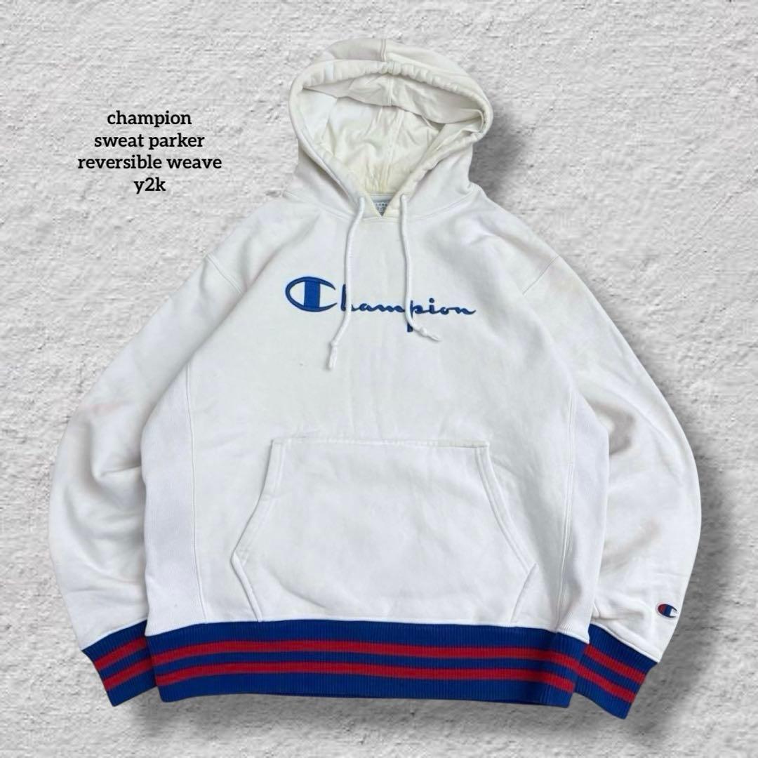 チャンピオンスウェットパーカーリバースウィーブy2k刺繍ロゴvintage古着