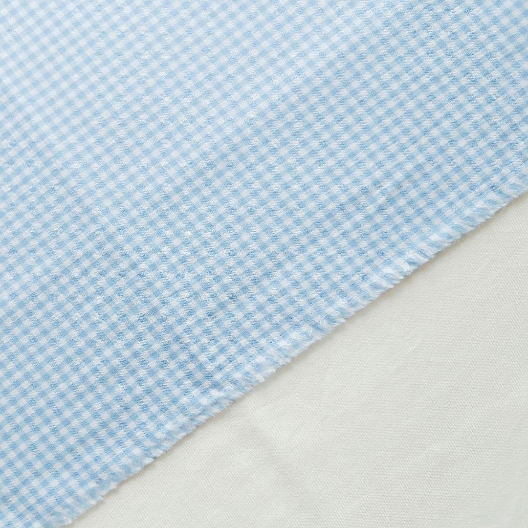 カットクロス【ギンガムチェック】サックス 水色 先染め生地 コットン はぎれ