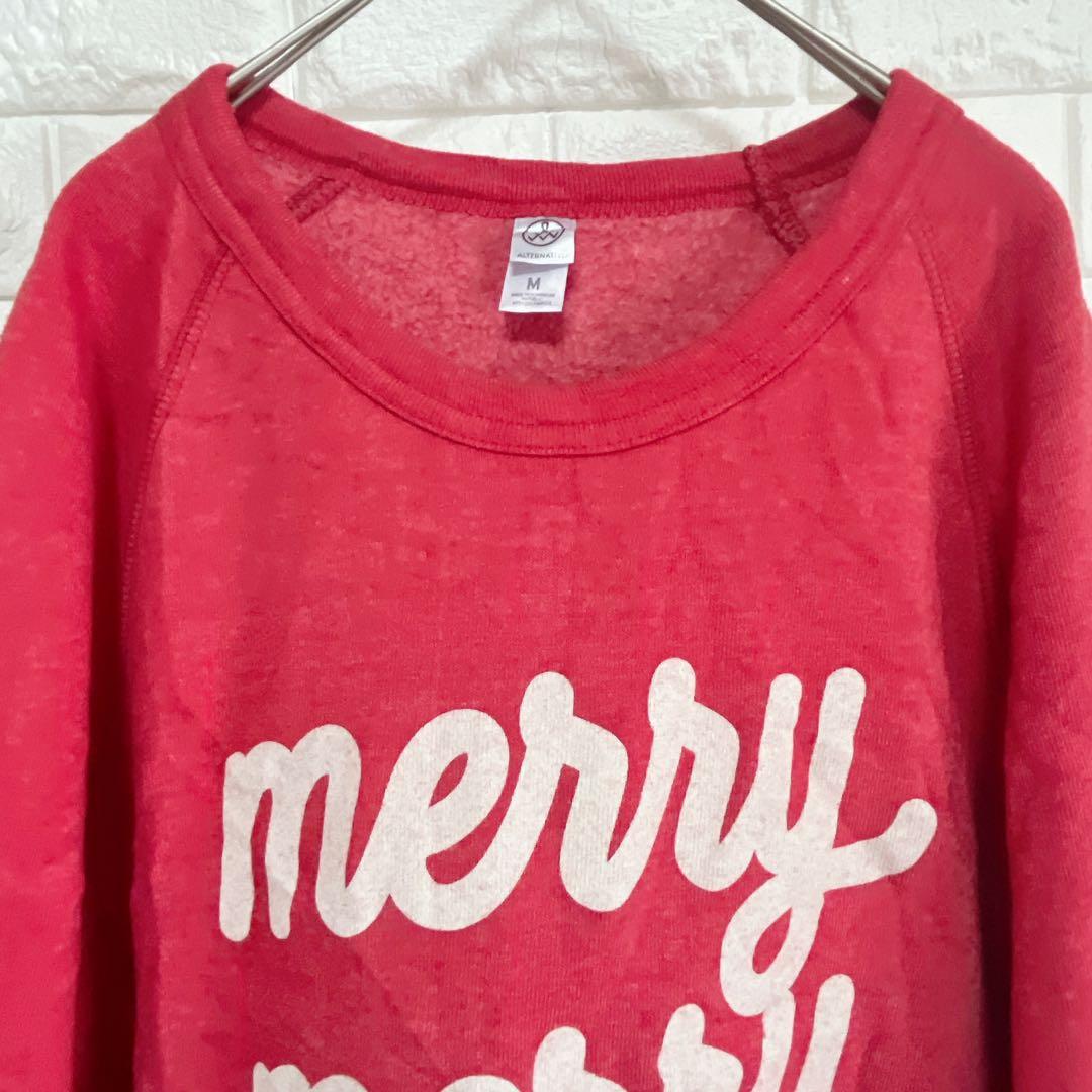 【ALTERNATIVE 】Mメッセージプリント スウェット長袖トレーナー赤