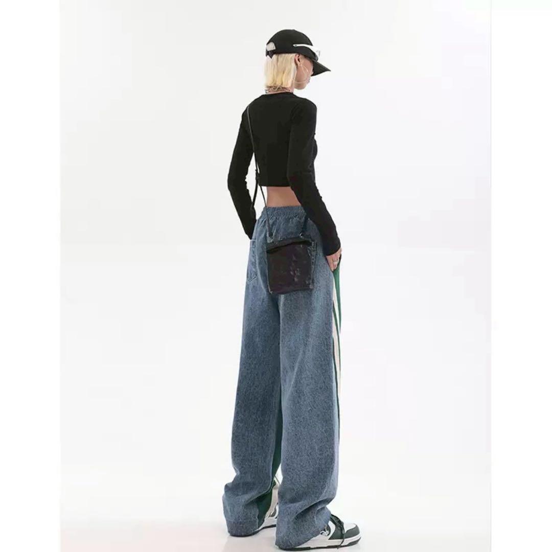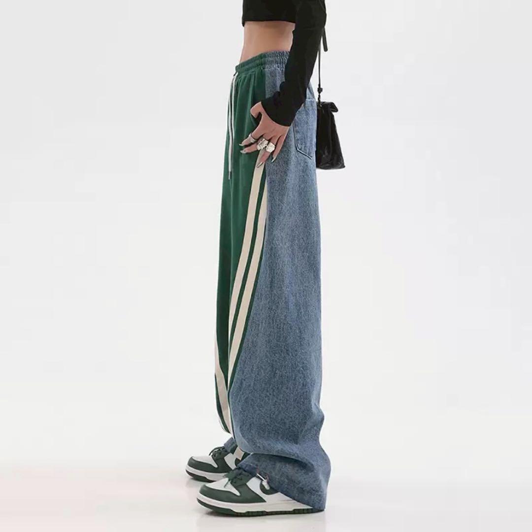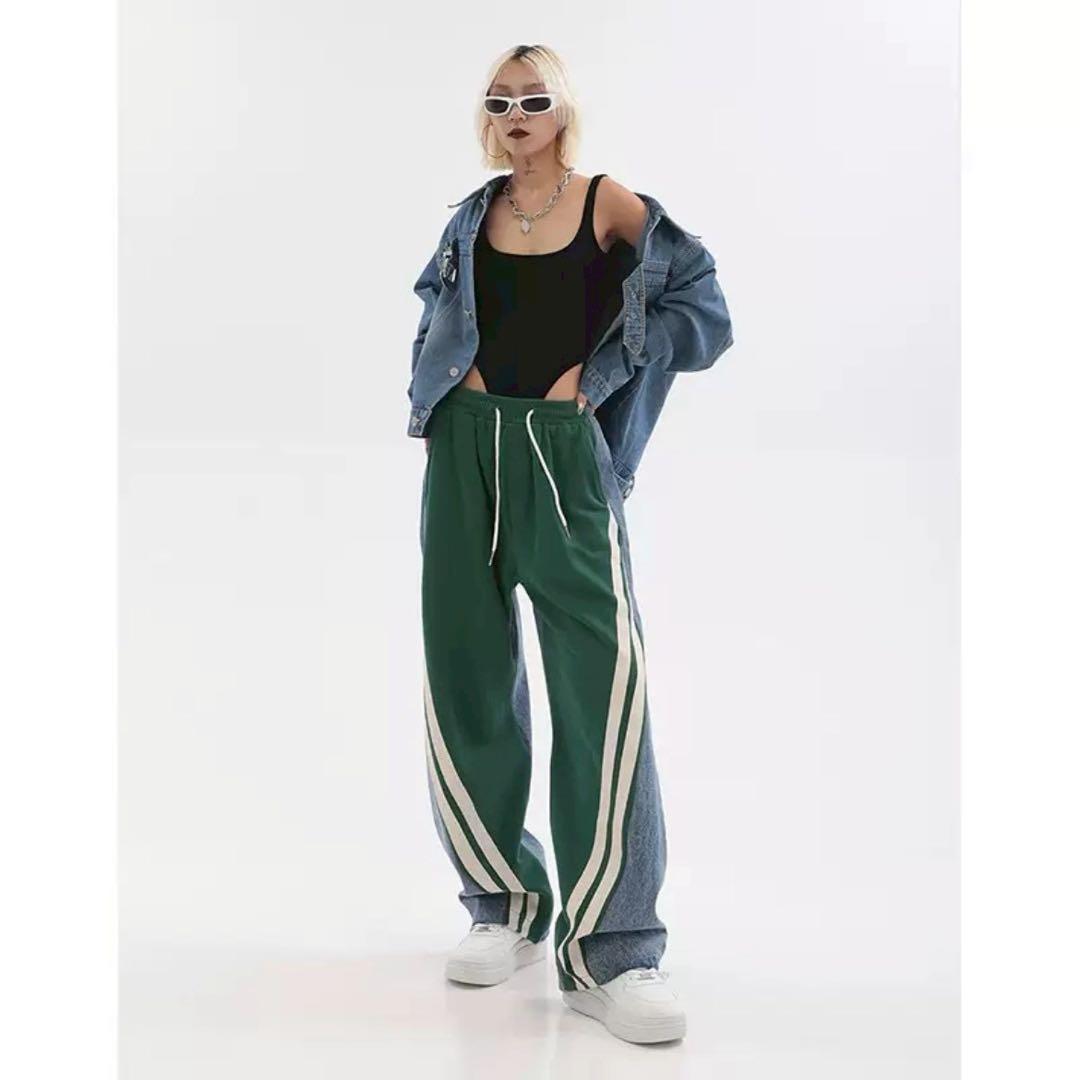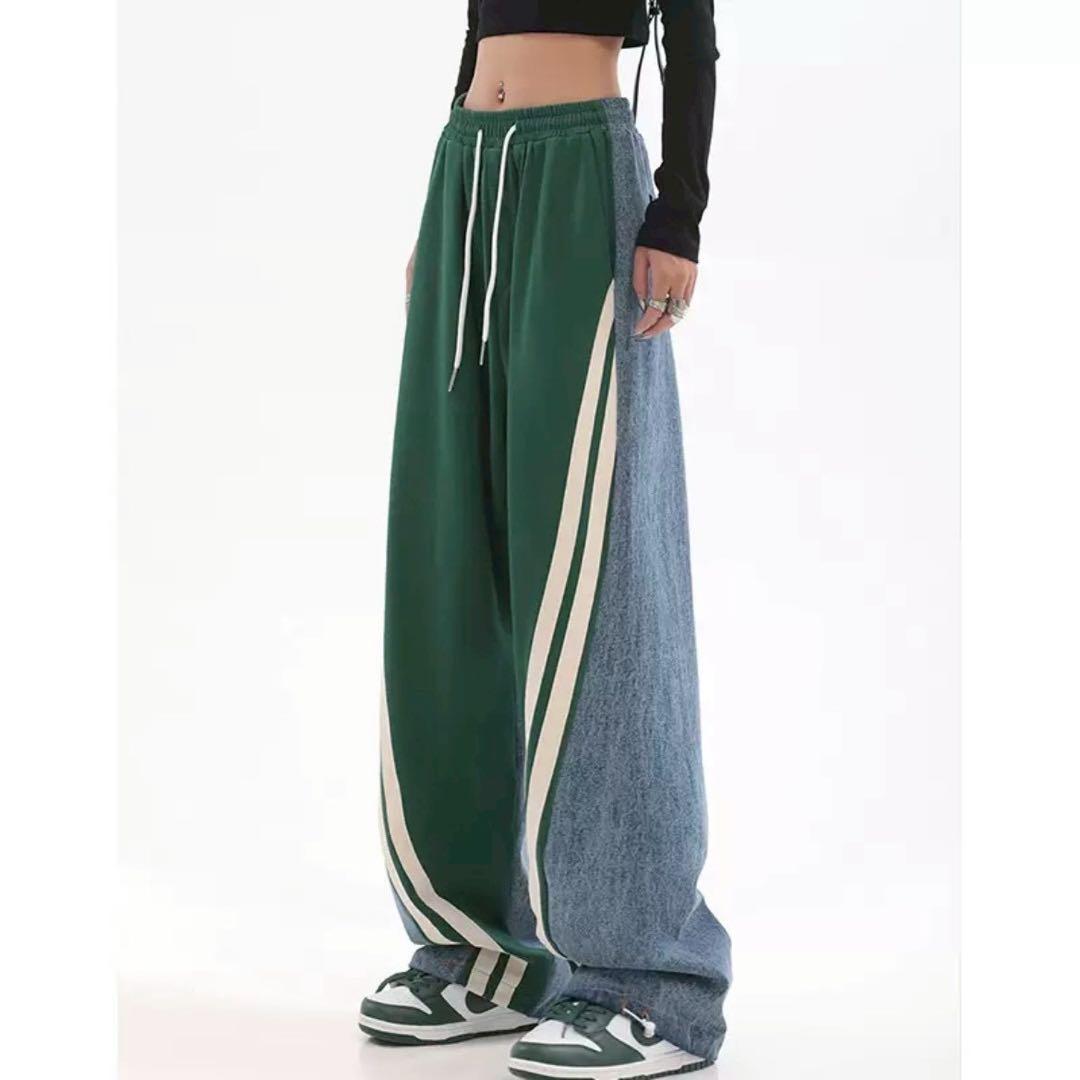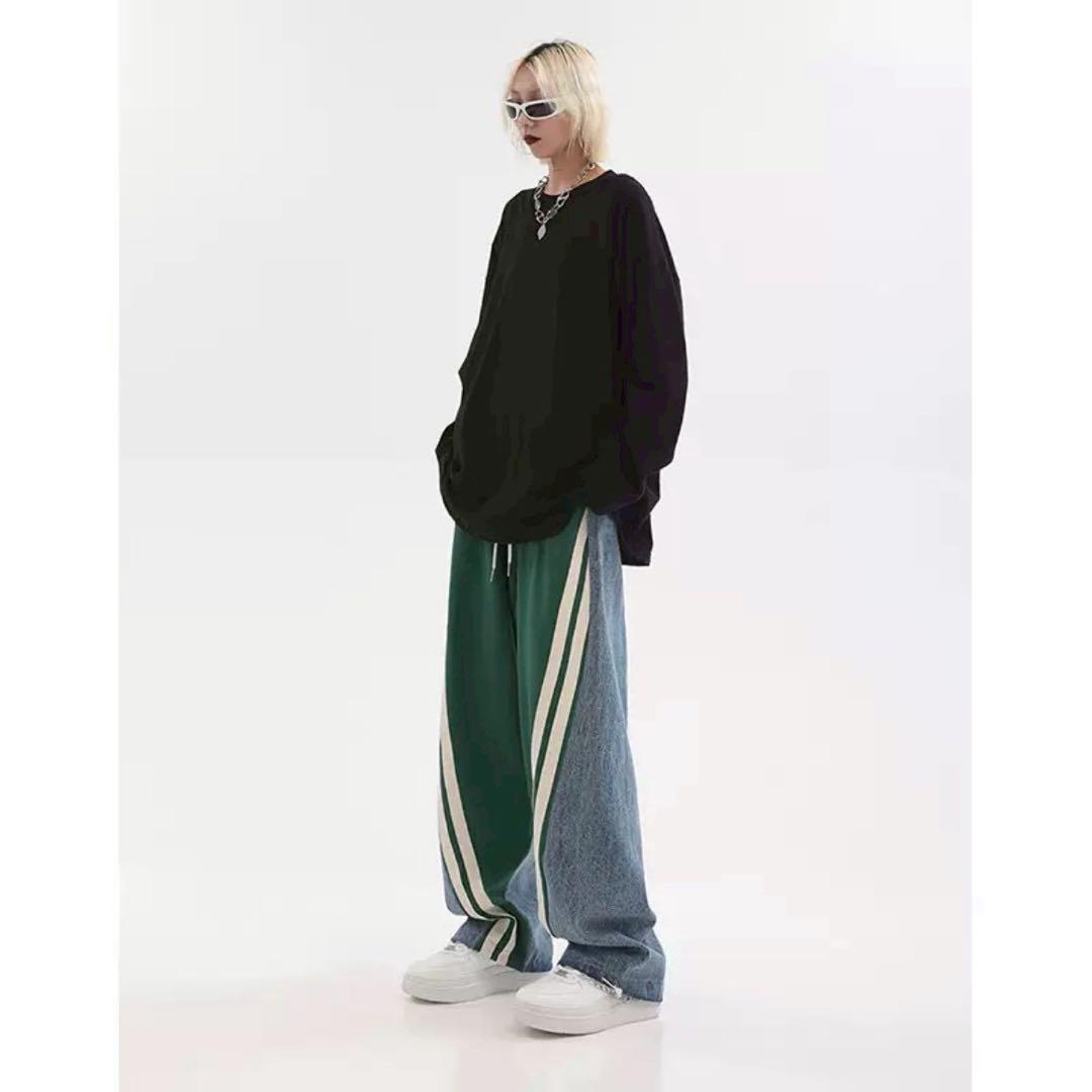 スウェットパンツ レディース バイカラー ジャージ デニム ユニセックス 韓国