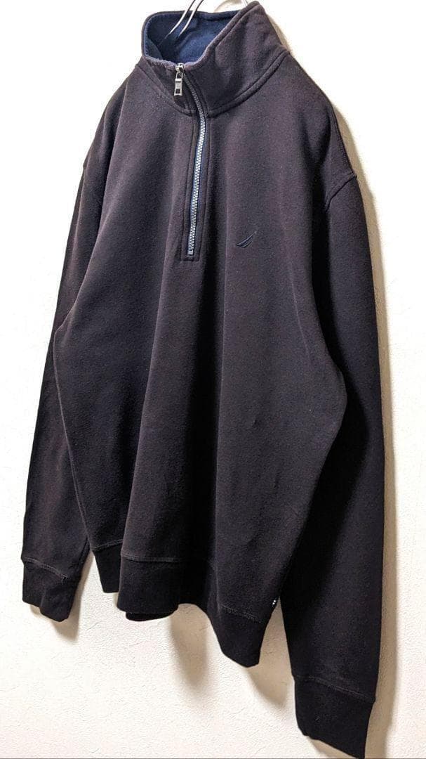 ノーティカ ロゴ刺繍 ハーフジップスウェットトレーナー ブラウン 茶色 古着