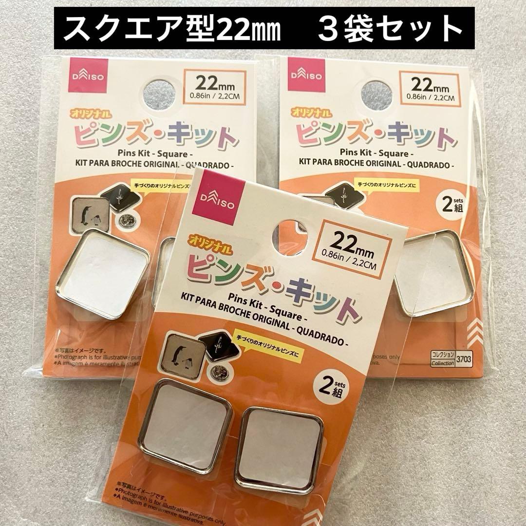 ★ダイソー★オリジナル ピンズキット スクエア型 22㎜ 3個セット★