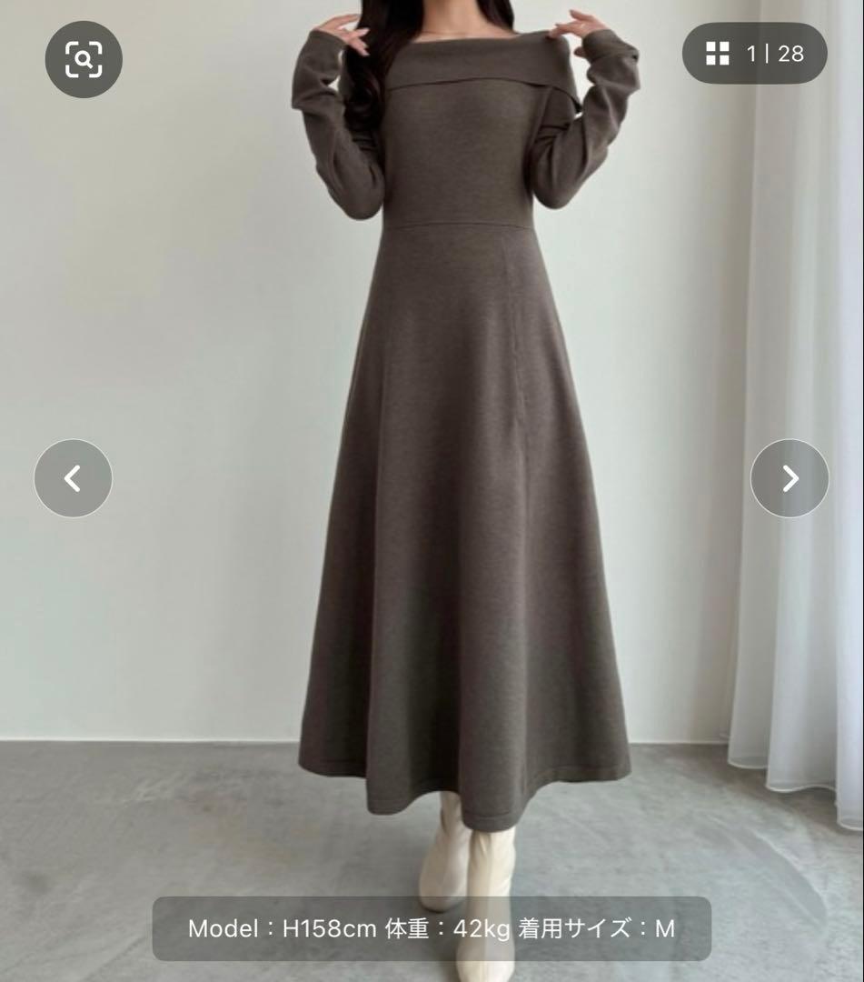CENEA オフショル風スクエアネックロングニットワンピ M