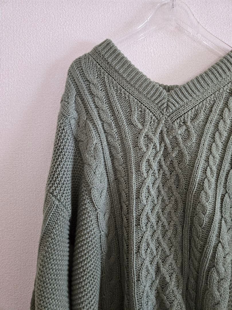 しまむらSEASON REASON 2WAYケーブルニットカーディガン緑LL美品