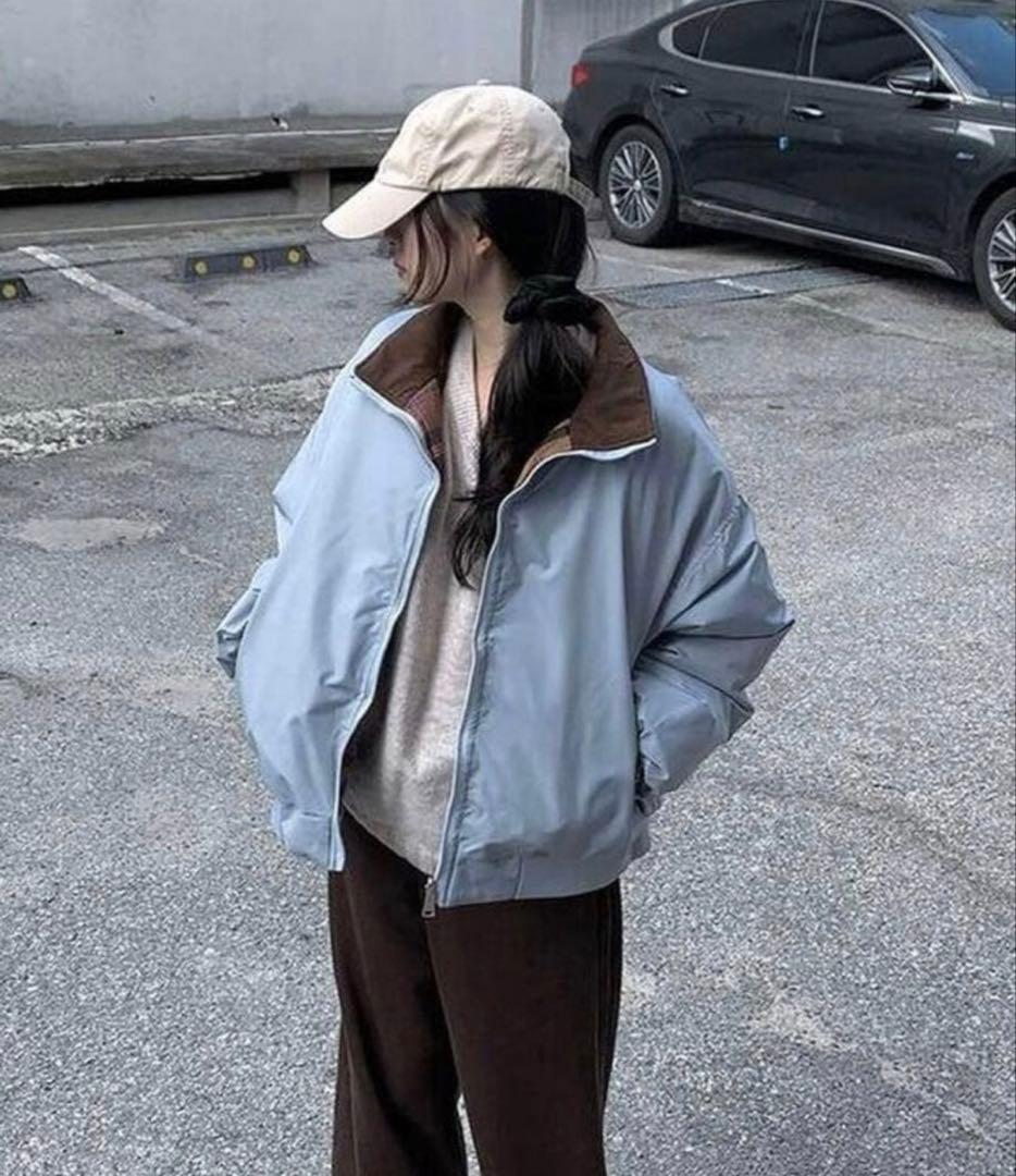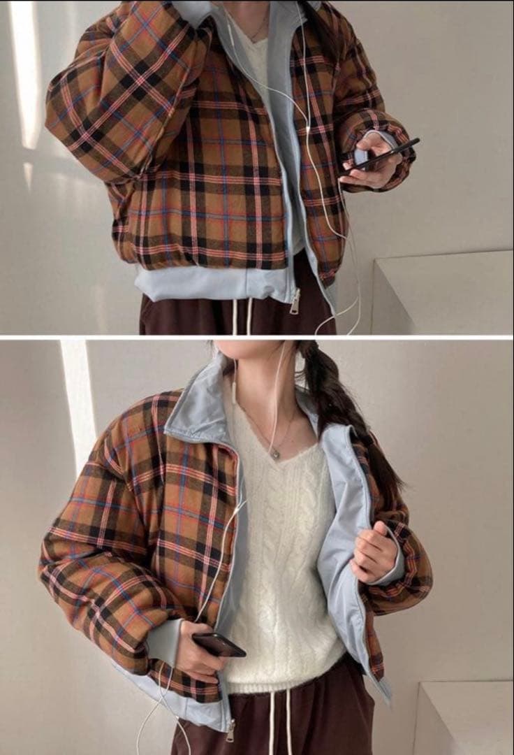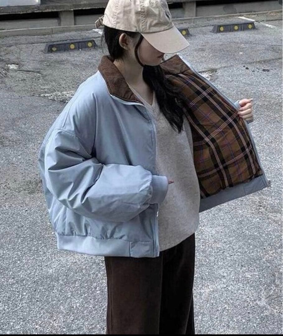sona ソナ リバーシブルチェックコーデュロイジャンパー スカイブルー