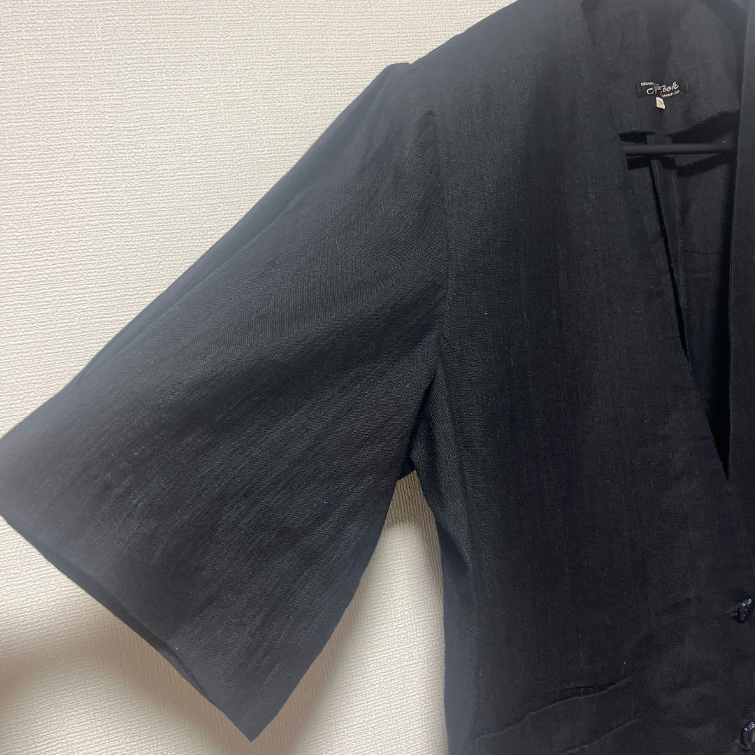 NewCook ✴︎Vネック半袖ジャケットカーディガンブラックノーカラーコート