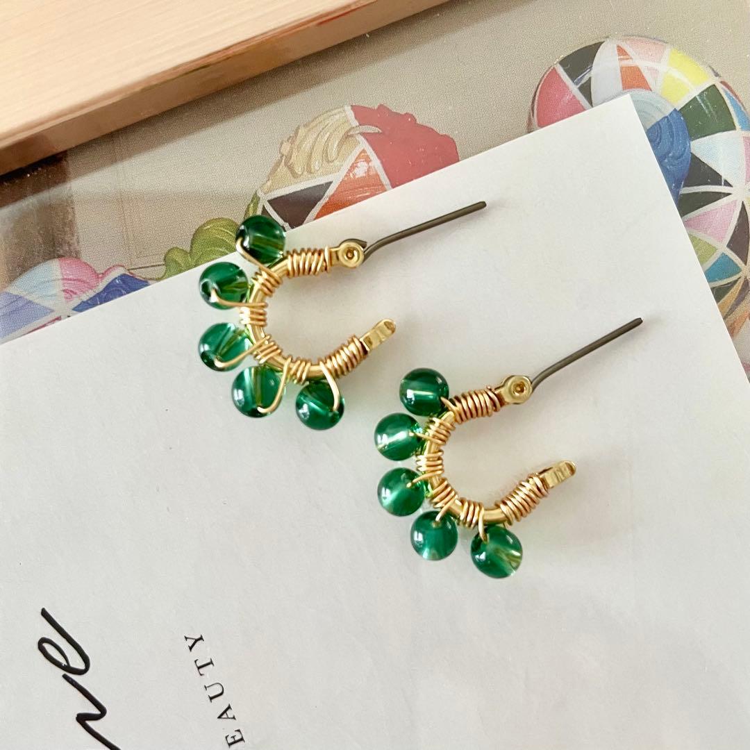 【グリーン水晶のチタンフープピアス】