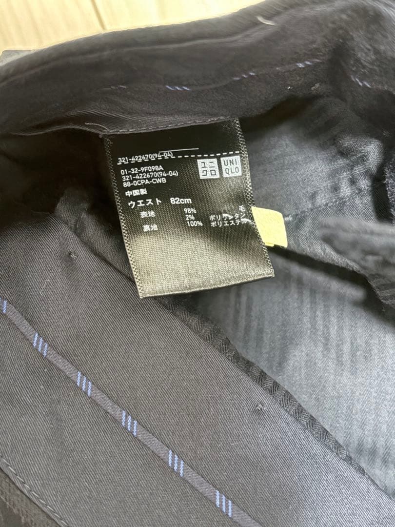 ユニクロ ストレッチウールスリムフィットパンツ(ストライプ )濃紺