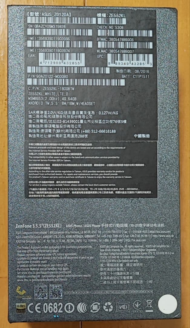 【美品】ASUS zenfone3 ZE552KL 64GB SIMフリー