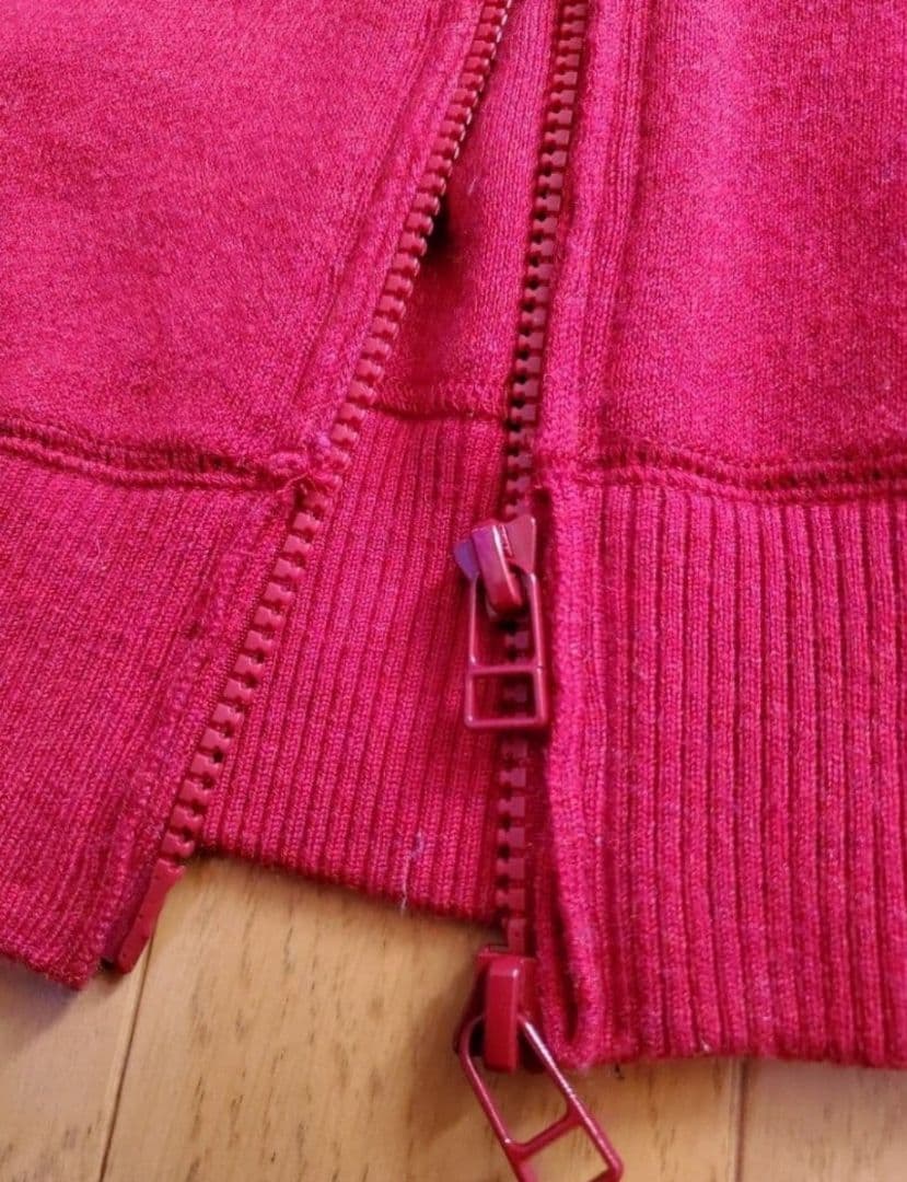 H.A.Kハク ニットダブルジップブルゾン 赤 牛革パッチ レッド カーディガン