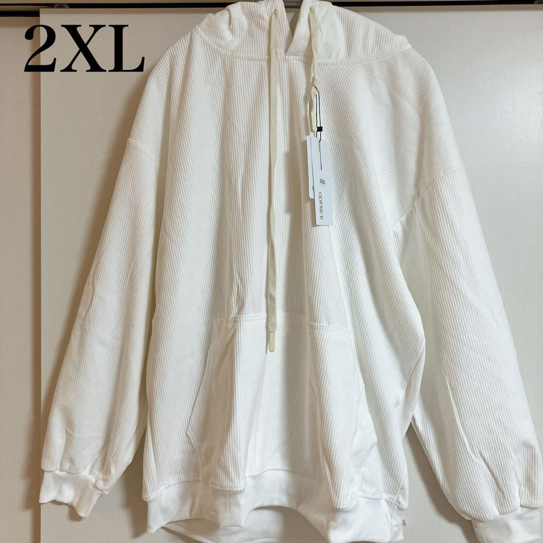 【2XL】パーカー 長袖 メンズ 秋 大きいサイズ ホワイト おしゃれ