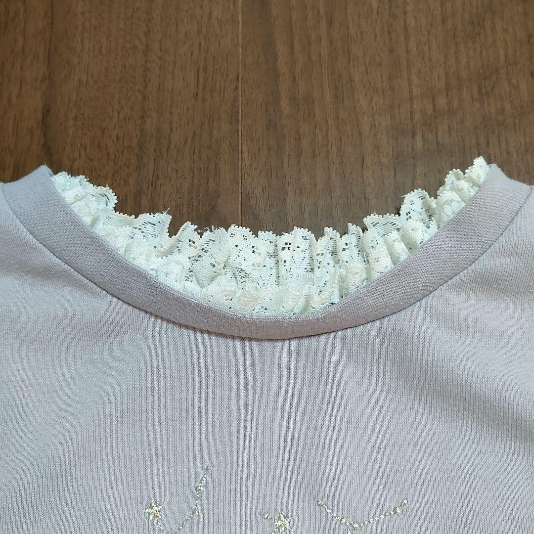 axesfemme ラメ刺繍Tシャツ ラベンダー レース襟 フリーサイズ 半袖