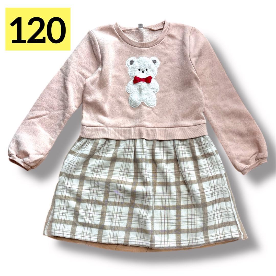 ❤️120cm❤️裏起毛❤️ワンピース❤️ピンク❤️ベージュ❤️チェック❤️ふわふわ❤️白くま❤️