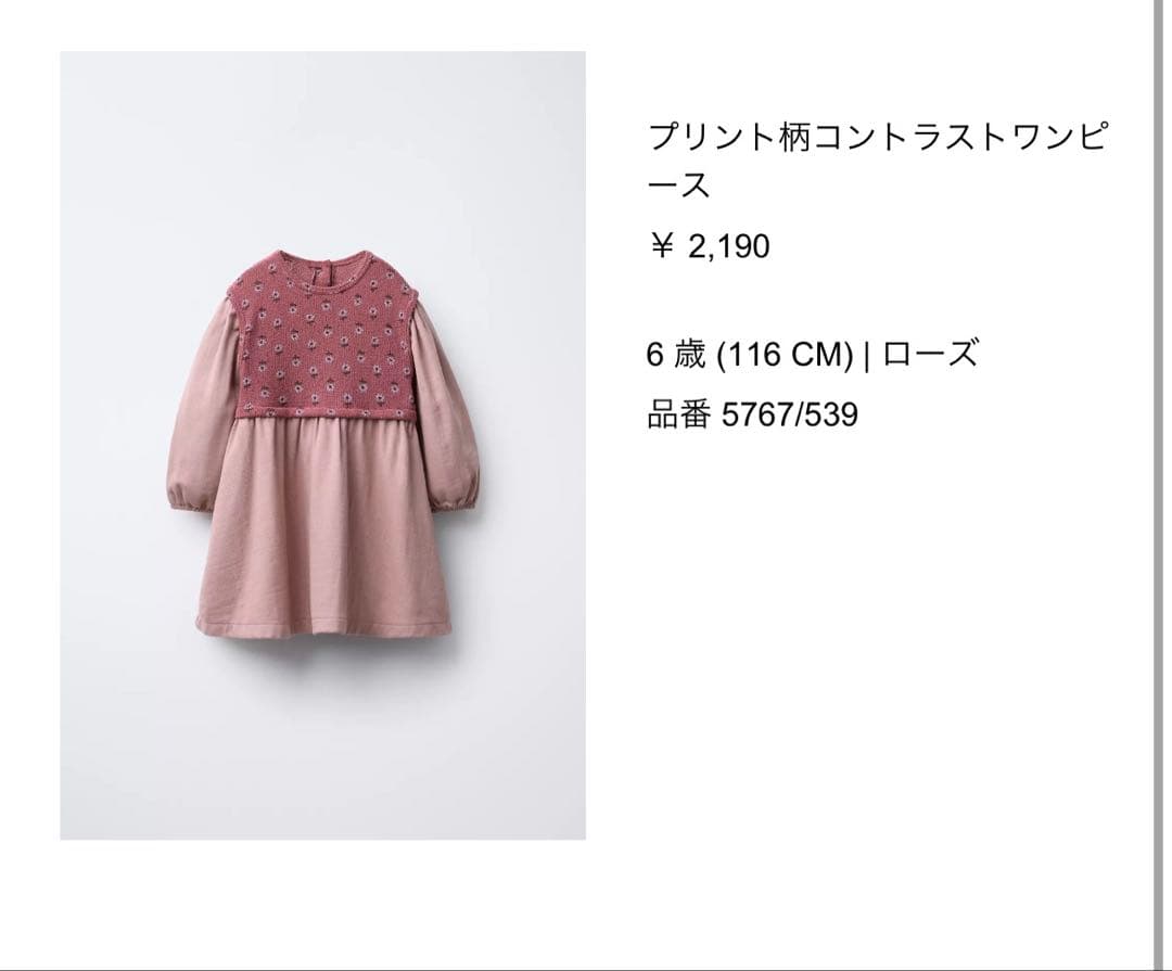 ZARA プリント柄コントラストワンピース 116cm