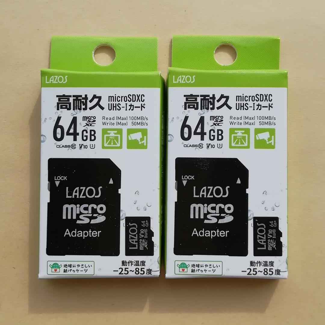 【新品】2個セット マイクロSDカード 64GB 高耐久 LAZOS