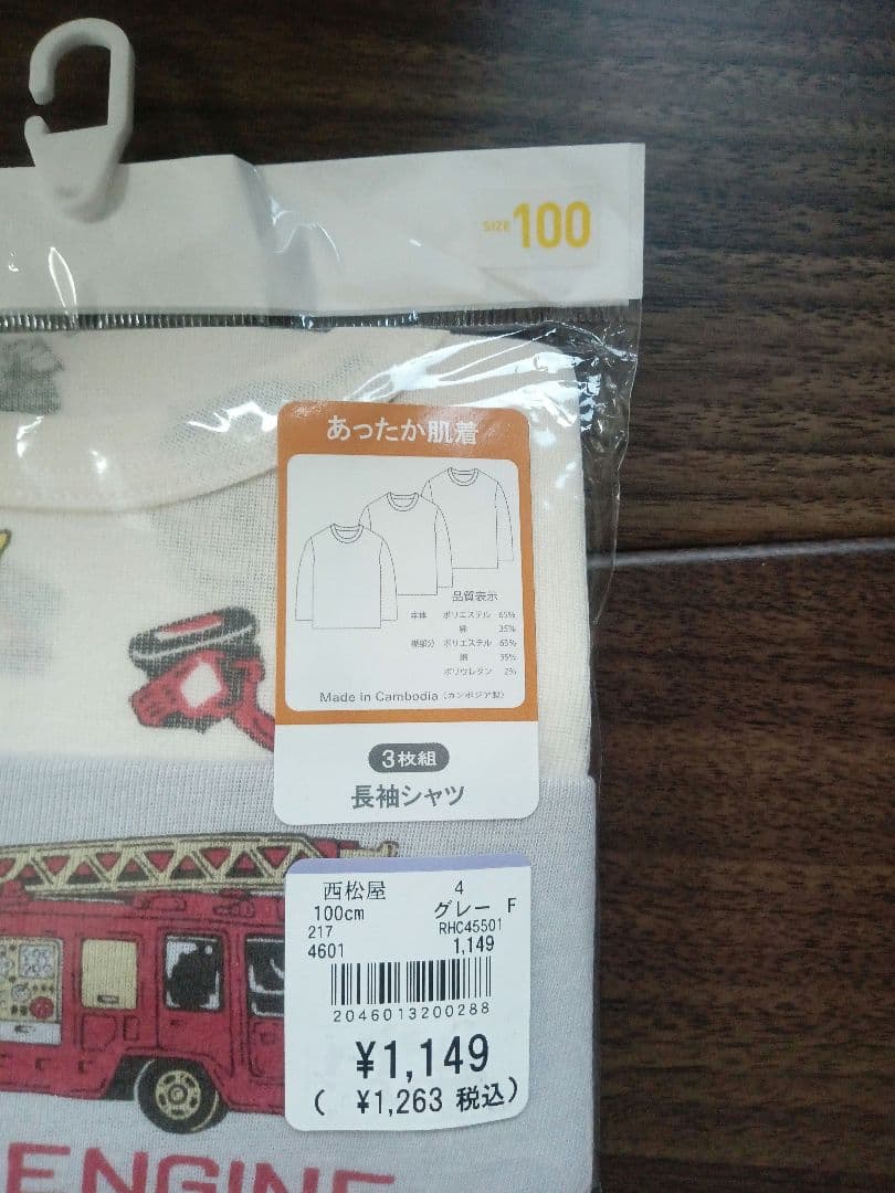 エルフィンドール 長袖肌着 3枚組 100cm 消防車・ブルドーザー