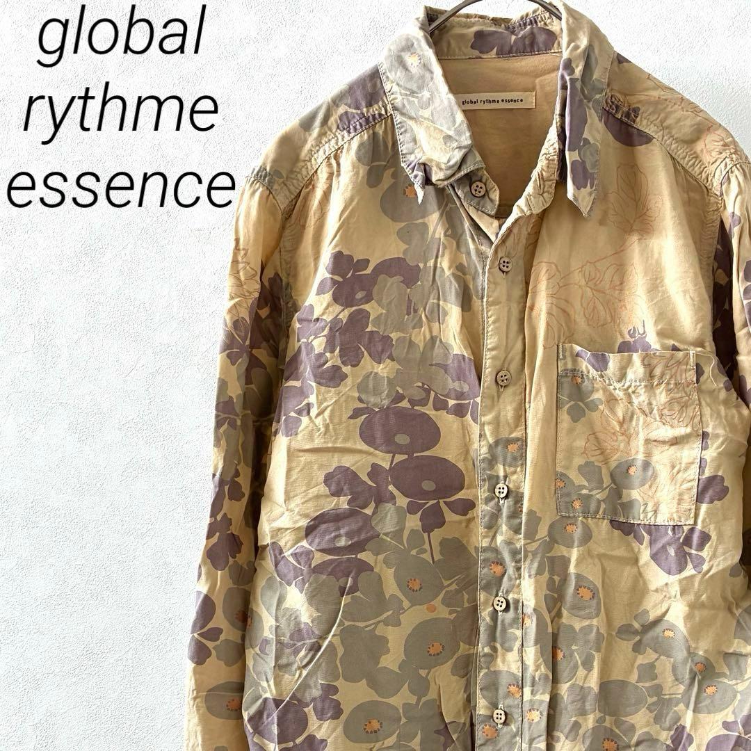 global rythme essence シャツ 長袖 胸ポケット リーフ柄