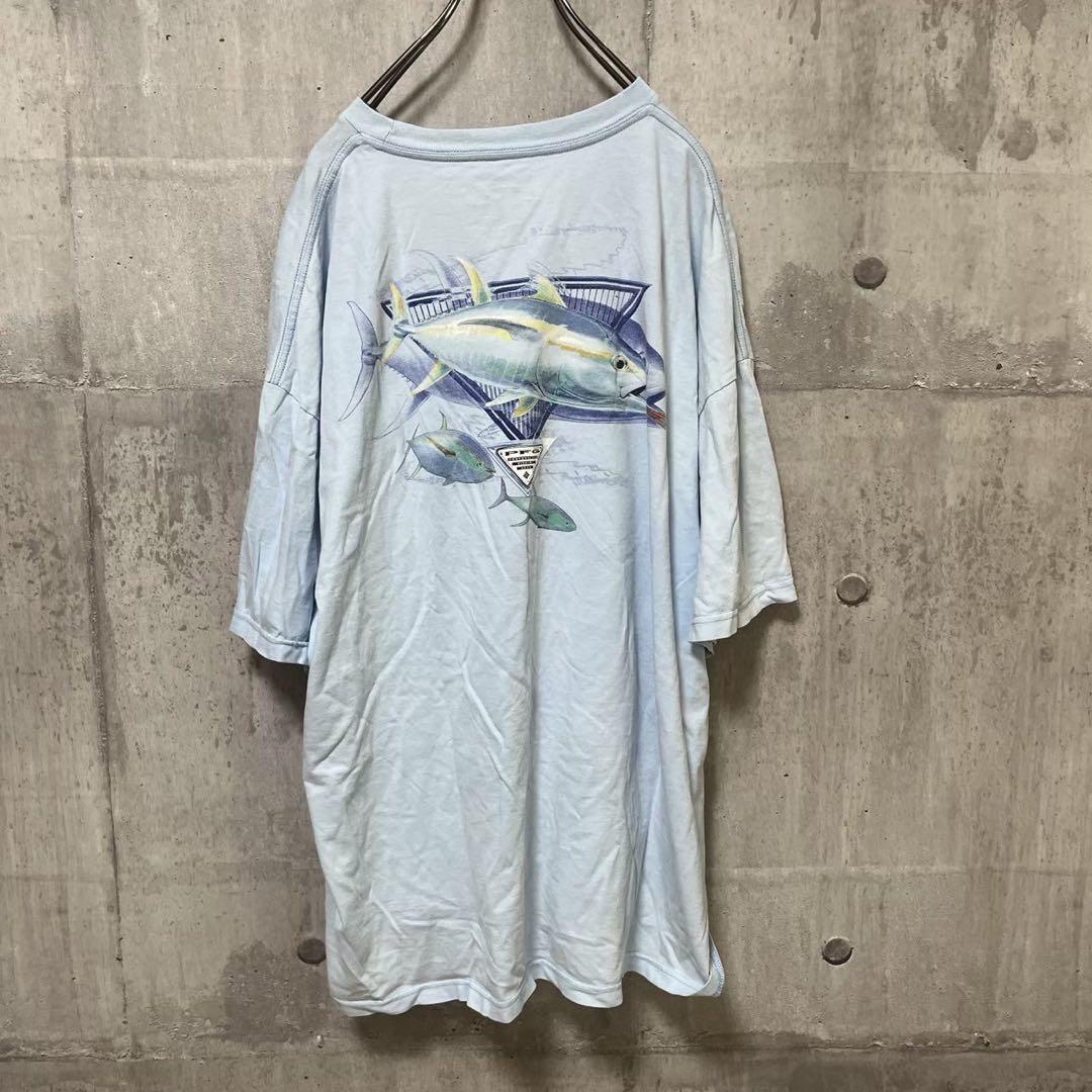 コロンビア 半袖 Tシャツ ビッグプリント スカイブルー メンズXXL