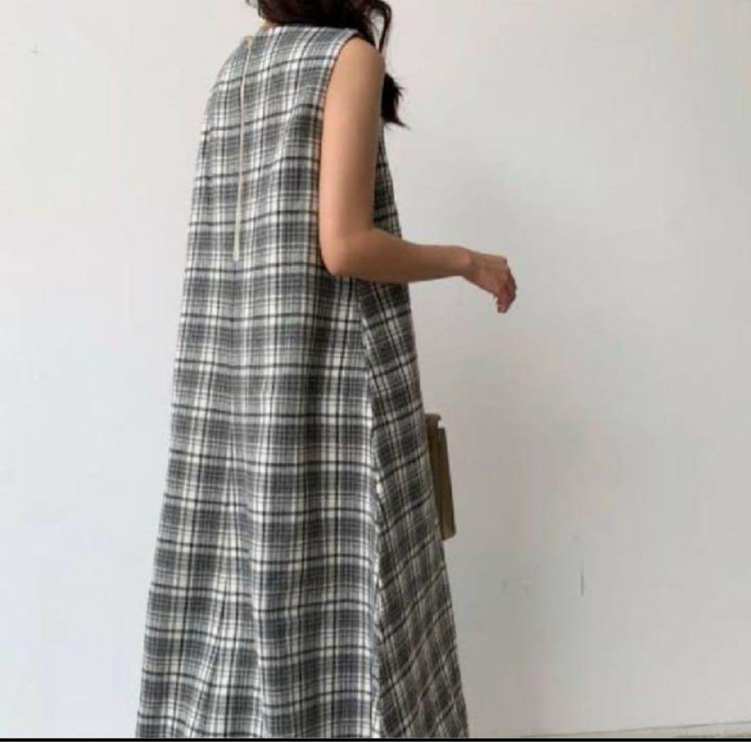 ⭐︎バースデーバッシュの秋冬ノースリーブワンピース チェック/Aライン/ウール