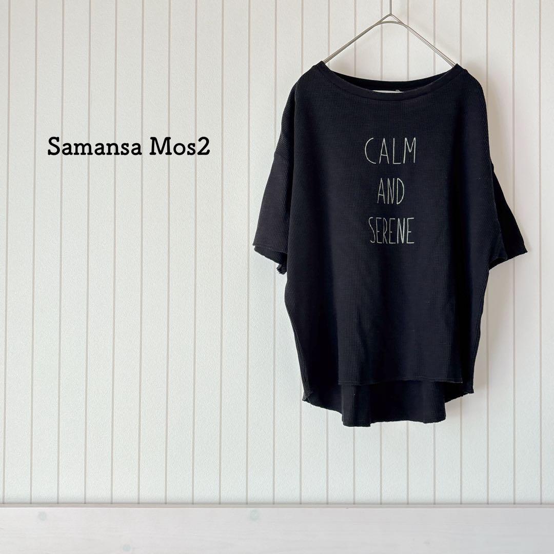 サマンサモスモス ワッフル生地Tシャツ ロゴプリント 黒 シンプル 定番
