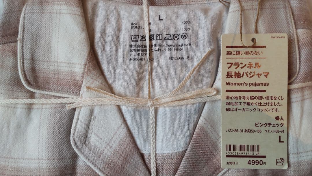 32,無印☆ピンクチェック☆パジャマ☆Lサイズ