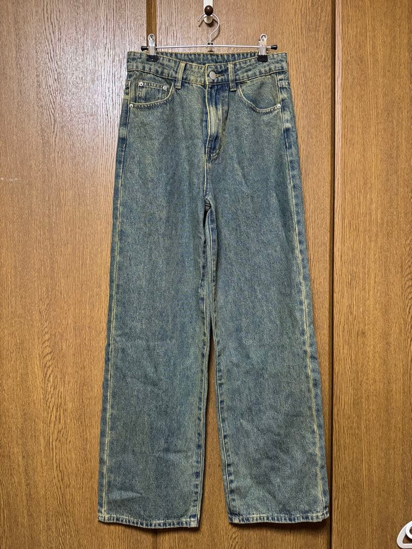 ダークウォッシュ ワイドレッグ デニムパンツ